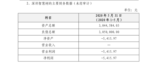 在公告中,爱体育电子官方网站-爱体育(中国)科技披露了深圳智慧树的主要财务数据(未经审计),如下图所示。